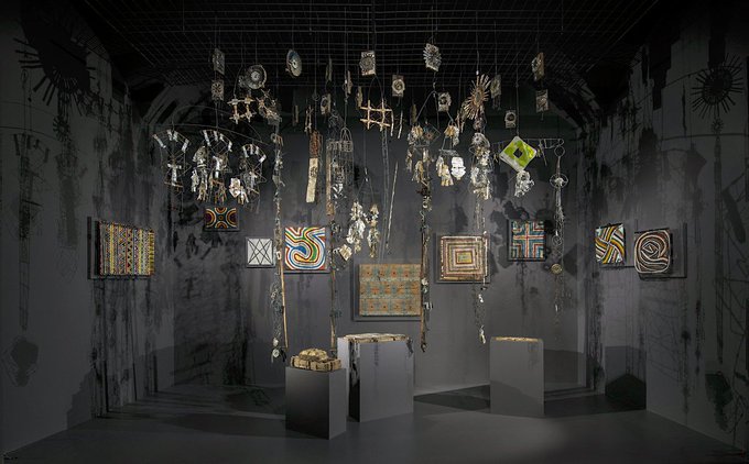 A remarkable work Blangdon began in the late 1950s and continued until his death in 1986, Artfully composed using bits of wire, beads, foil, paper and other everyday materials for the sole purpose of generating natural energy to cure ailments.
