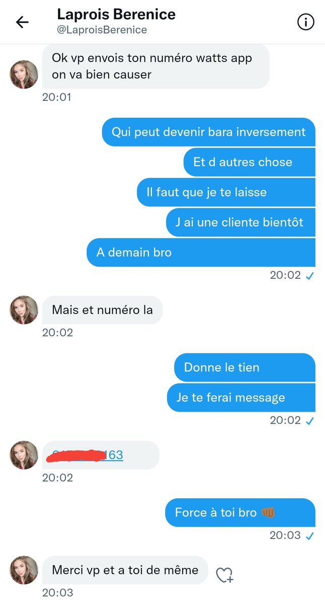 Il n arrêtait pas de me demander mon whatsapp... jusqu'à la fin.