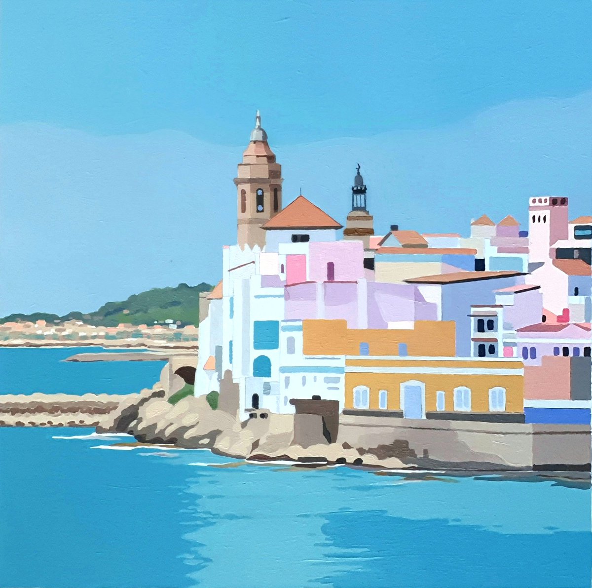 A covert painting commission of #Sitges #Spain for a 10th Anniversary present 🌈 Luckily the recipient isn’t on twitter! #paintingcommission #anniversary