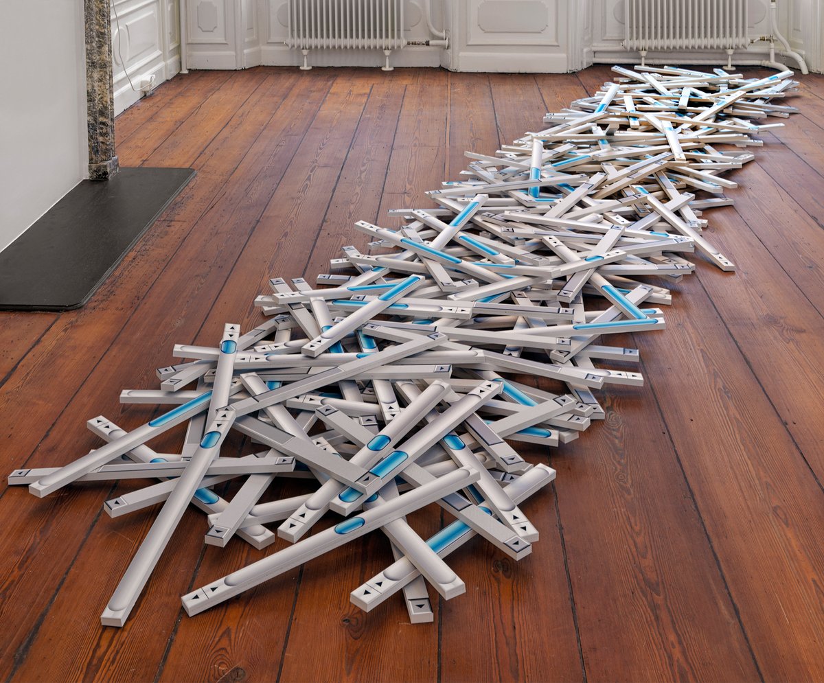 Scrollbars, 2023 (floor sculpture, 240 parts, archival print on Forex) A washed ashore skeleton of decades of Internet culture.